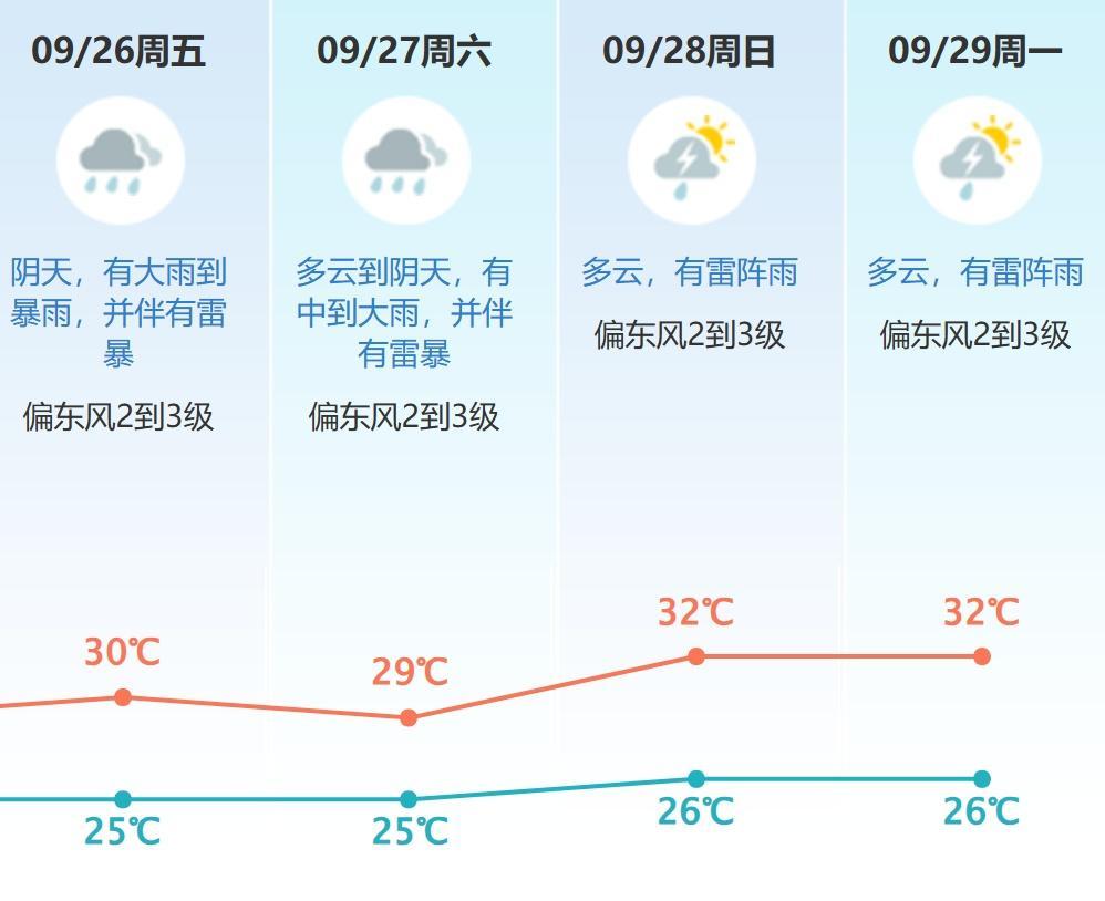 展望26—29日雷雨仍较频繁。请注意防御强降水引发的城市内涝、地质灾害等次生灾害;请密切关注台风动态,做好防御工作。